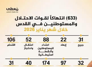 The Palestine Information Center (PIC) reported that occupied Jerusalem witnessed 633 violations by the Israeli enemy and Zionist settlers during the month of January,...