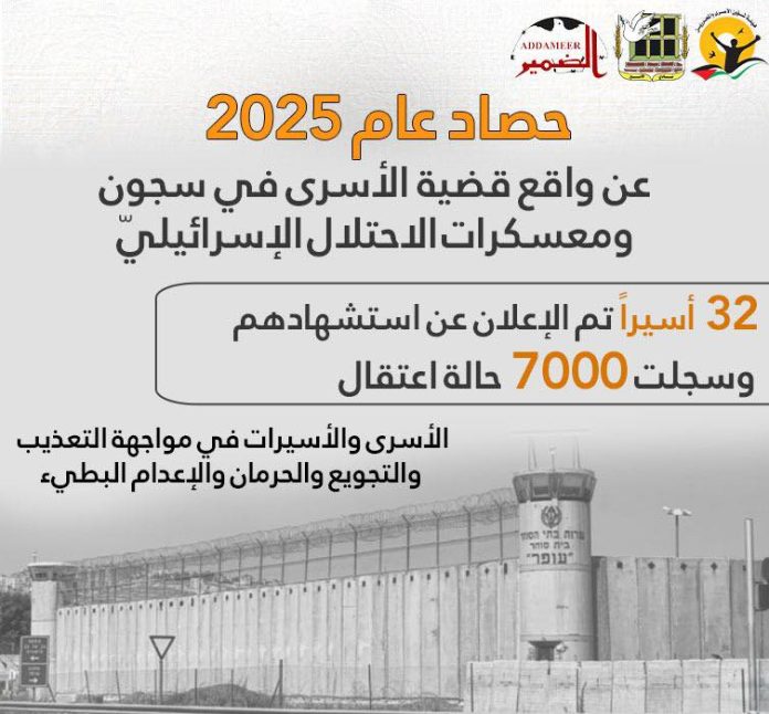 2025 marked a severe phase of systematic crimes against prisoners, with Israeli prisons used as sites of torture and slow execution, according to documented testimonies and statements by Israeli officials, including Minister Itamar Ben-Gvir.
