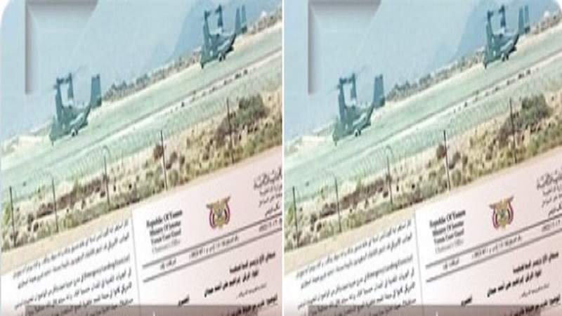 Yemeni officials say the use of advanced aircraft such as the V-22 Osprey indicates US intentions to build rapid-intervention capabilities in the heart of the strait, as part of a broader American-led escalation supported by regional allies and aimed at imposing a permanent colonial-style military presence in Yemeni territorial waters.