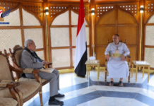His Excellency Field Marshal Mahdi Al-Mashat, Head of the Supreme Political Council, met today with the Minister of Electricity and Energy, Dr. Muhammad Al-Bukhaiti.