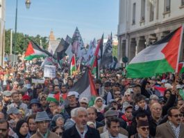 Dozens of Moroccans participate in protest in front of Parliament in support of Gaza