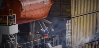 Video footage shows fire onboard Israeli ship MSC Sky II after...